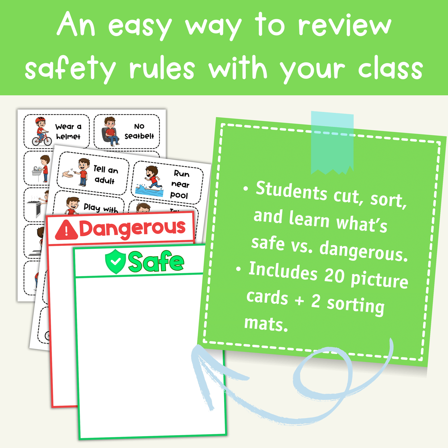 - 2 sorting mats labeled Safe and Dangerous