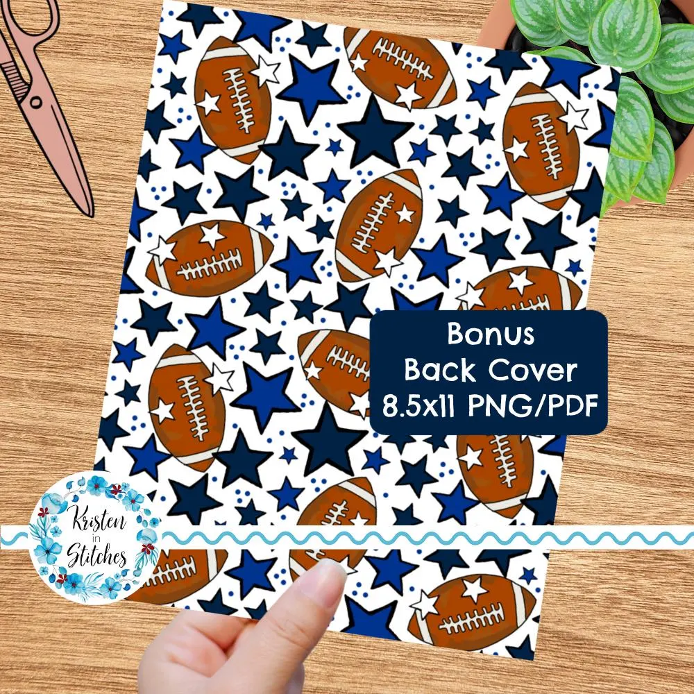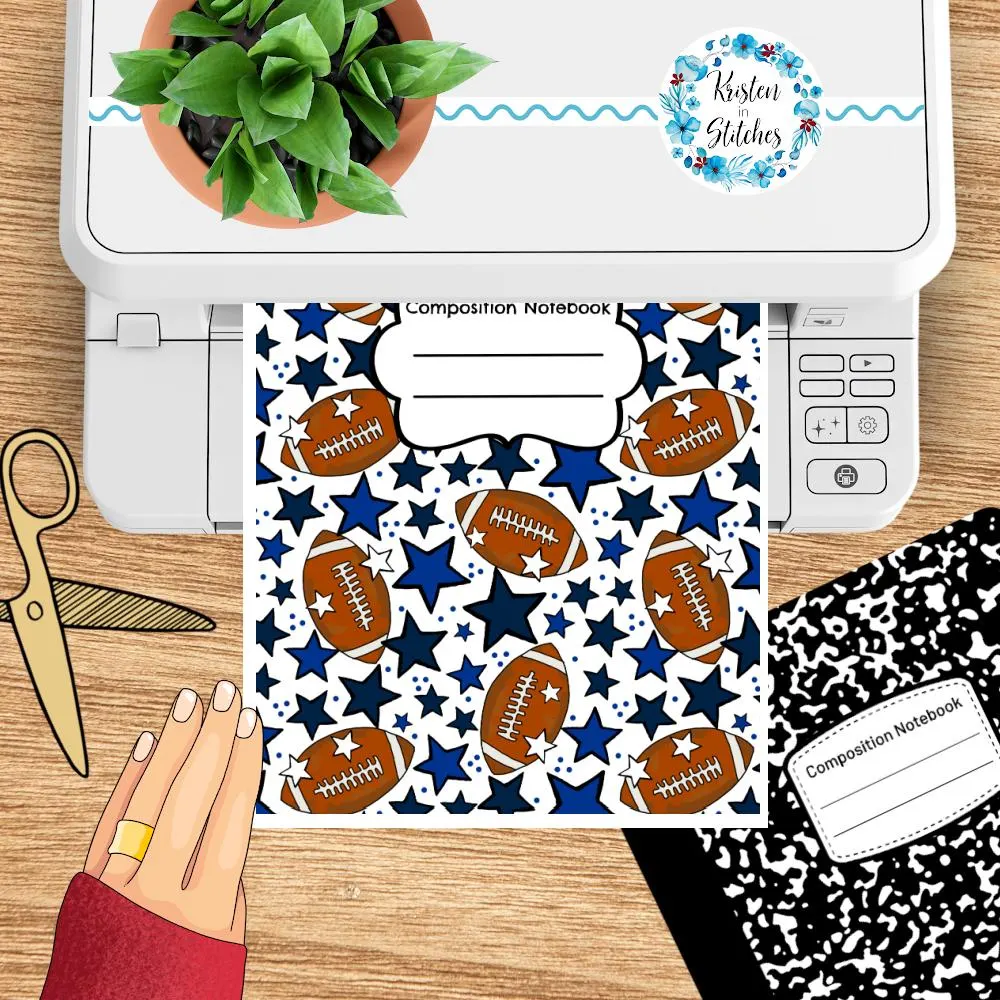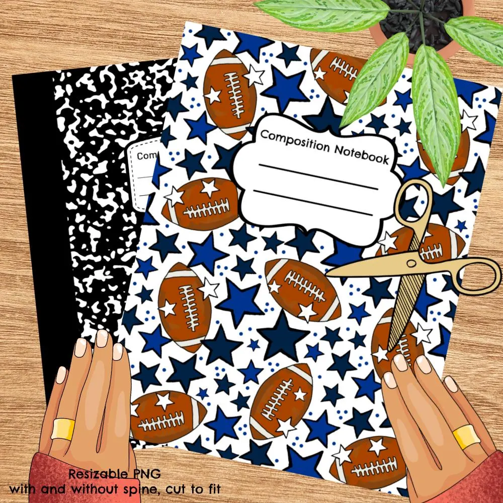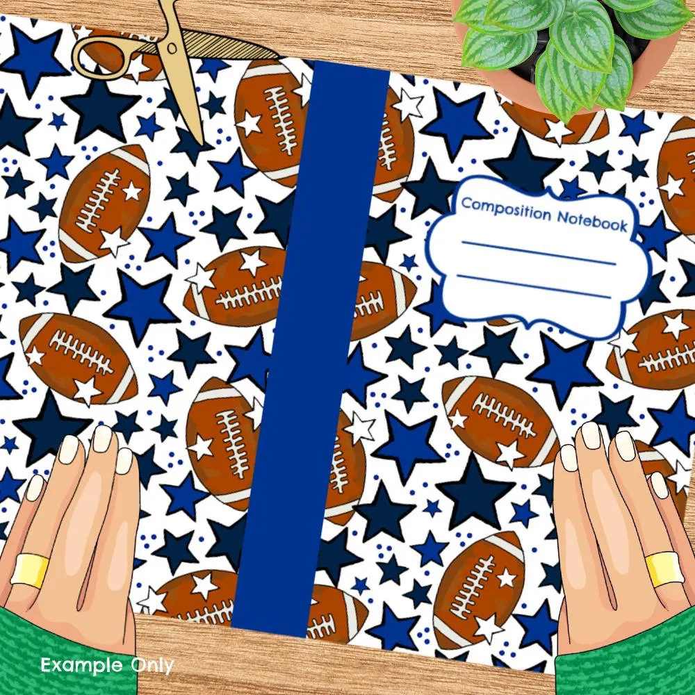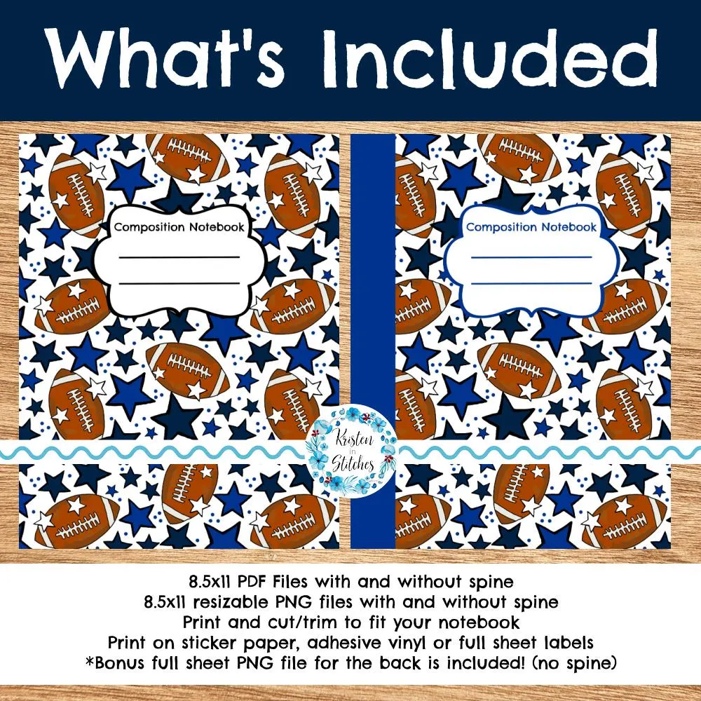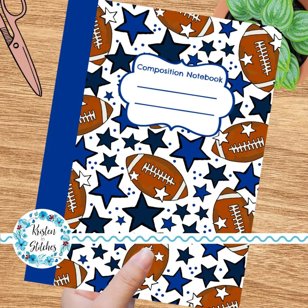 Composition Notebook Cover, Printable Resizable PNG, PDF, Royal Navy Blue and Silver Grey, Dallas Cowboys Football Colors