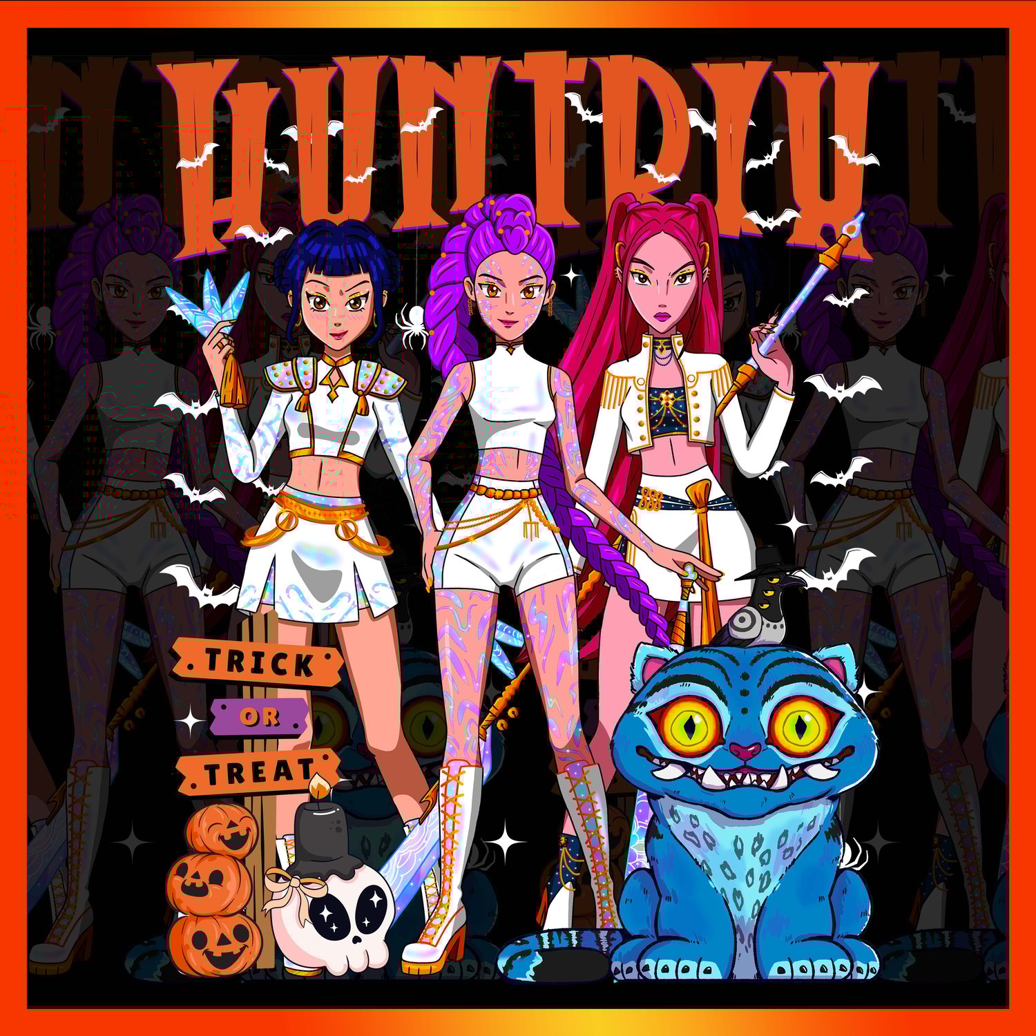 Step into the dark and stylish world of Halloween with the Huntrix Halloween Edition — a unique edition of anime-inspired digital artworks designed to make your products stand out this spooky season.