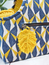 The bag features a zipper box pocket in the front and two handy lined slip pockets inside. There is a drop in lining and bound edges so there is no complicated turning out to be done. Best of all, the pattern includes the step-by-step instructions to make the little macrame feather too! (that sold me actually, I nearly bought it myself!).