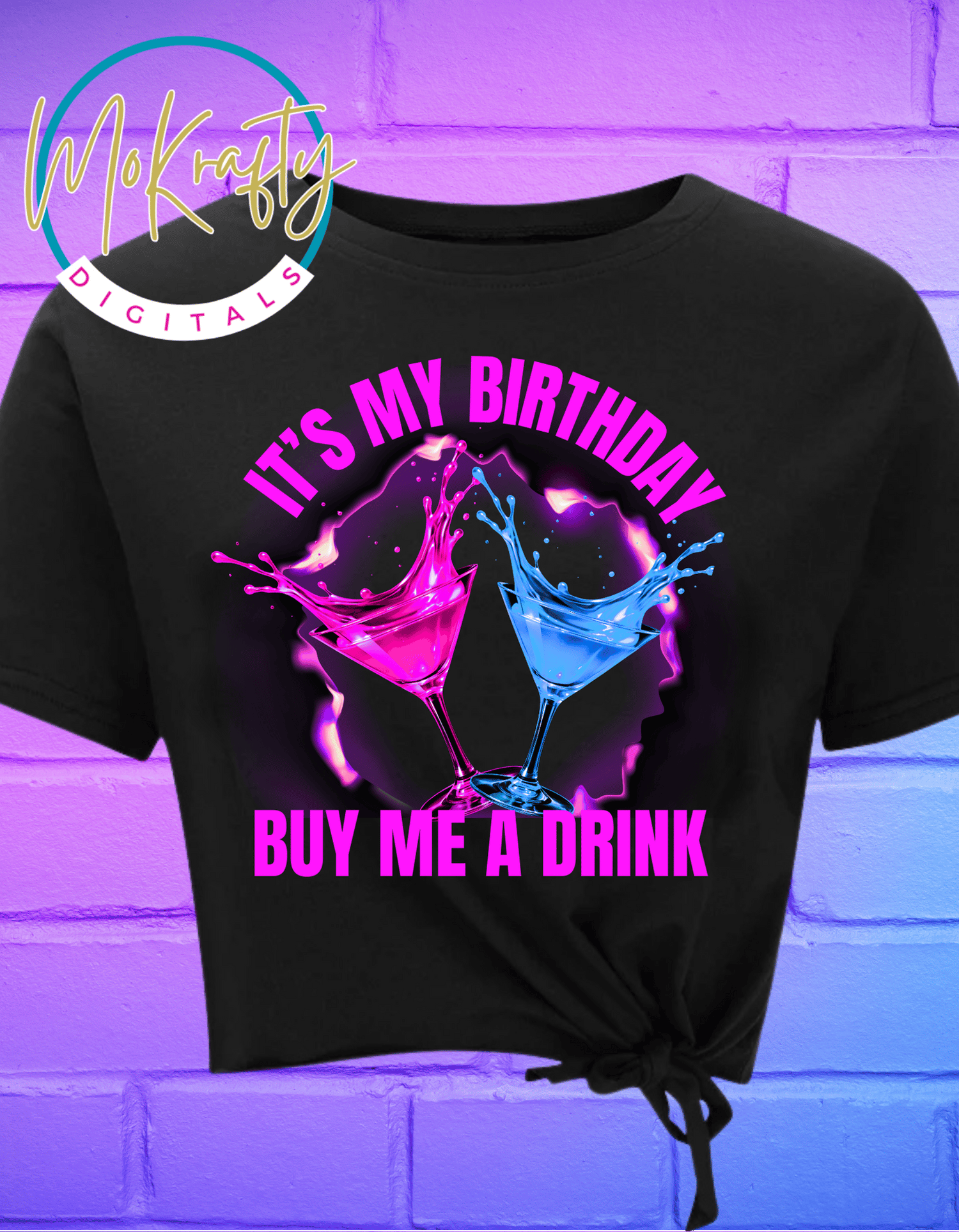 Turn the celebration up with this “It’s My Birthday – Buy Me a Drink” PNG. This bold birthday design features colorful cocktail splashes and glowing accents, perfect for creating standout birthday shirts and party merch.