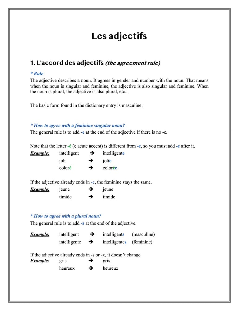 Adjectifs (lesson)