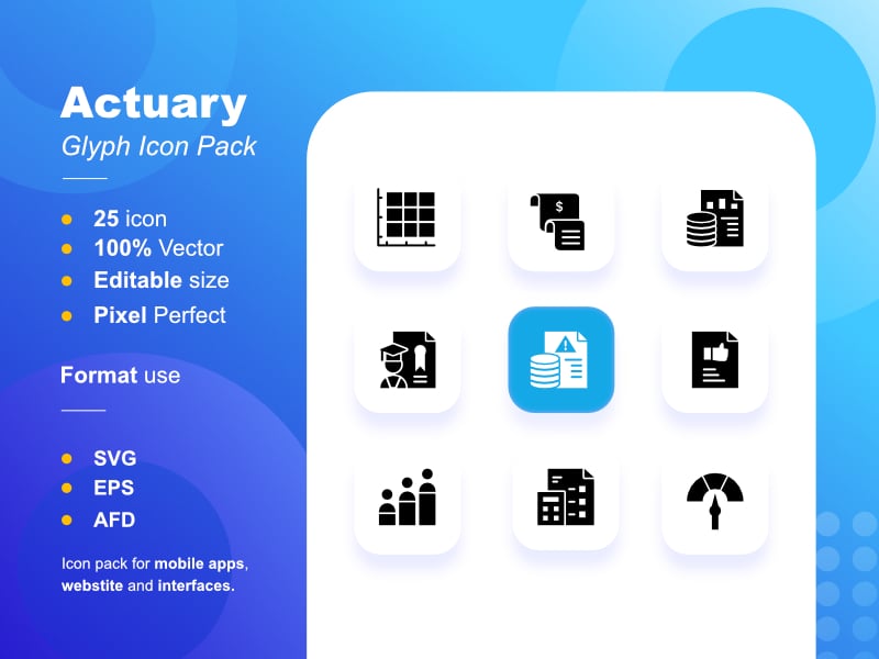 Actuary icon pack comprises 25 stylish icons.