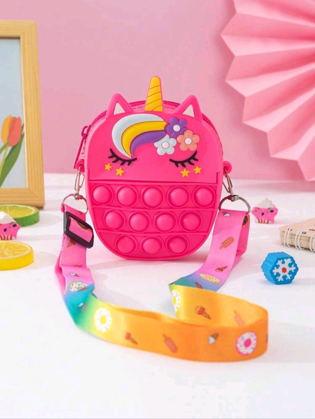 Pink Cute Cartoon Unicorn Pattern Silicone Crossbody Coin Purse For Kids