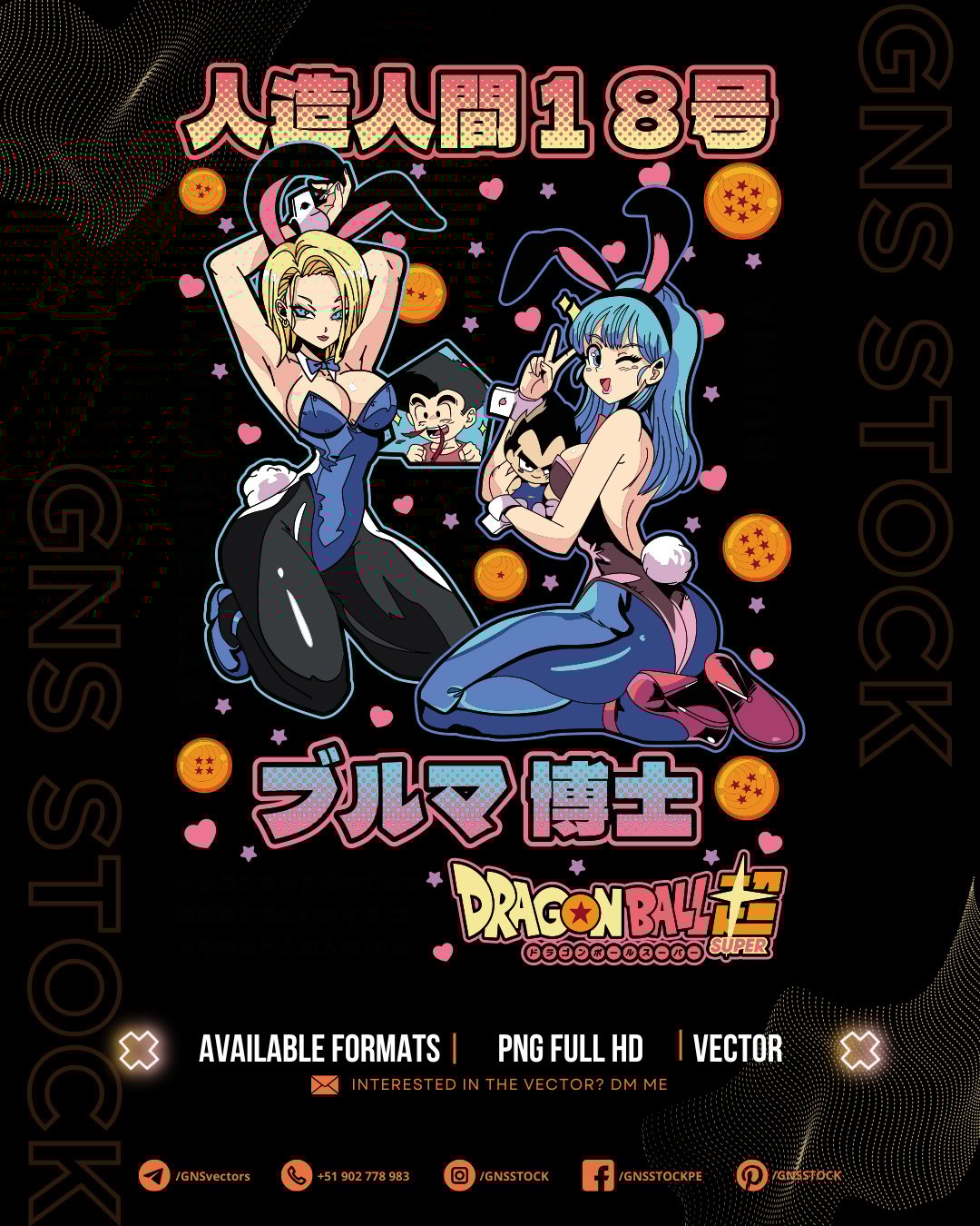 Anime Vector – Bulma & Android 18 | Dragon Ball | Design for DTF, Sublimation, T-Shirts | Files: CDR, PDF, PNG, SVG