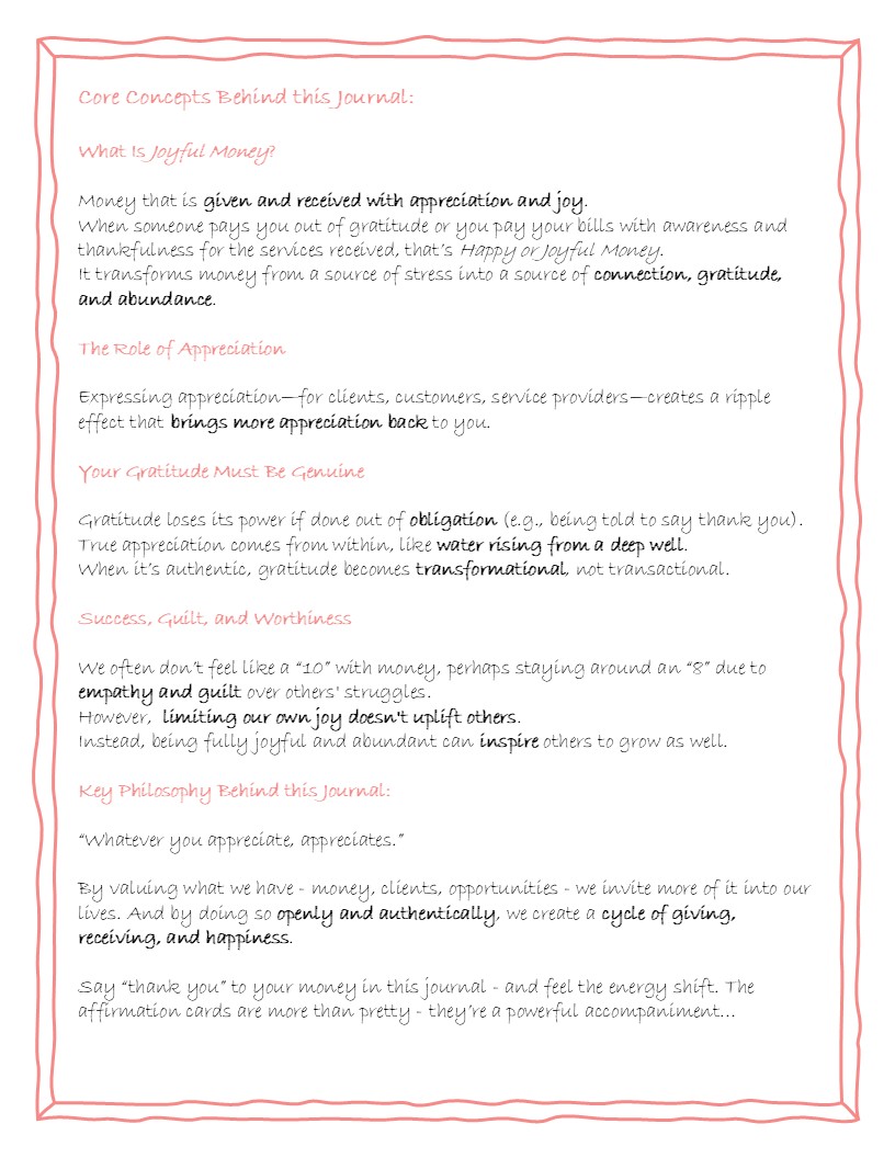 Printable Joyful Money Gratitude Journal & Affirmation Cards