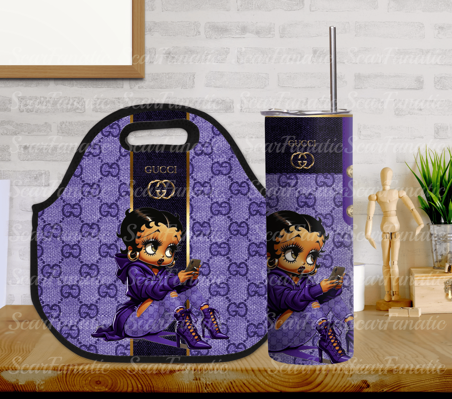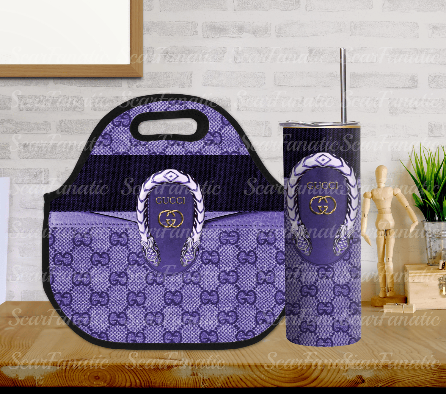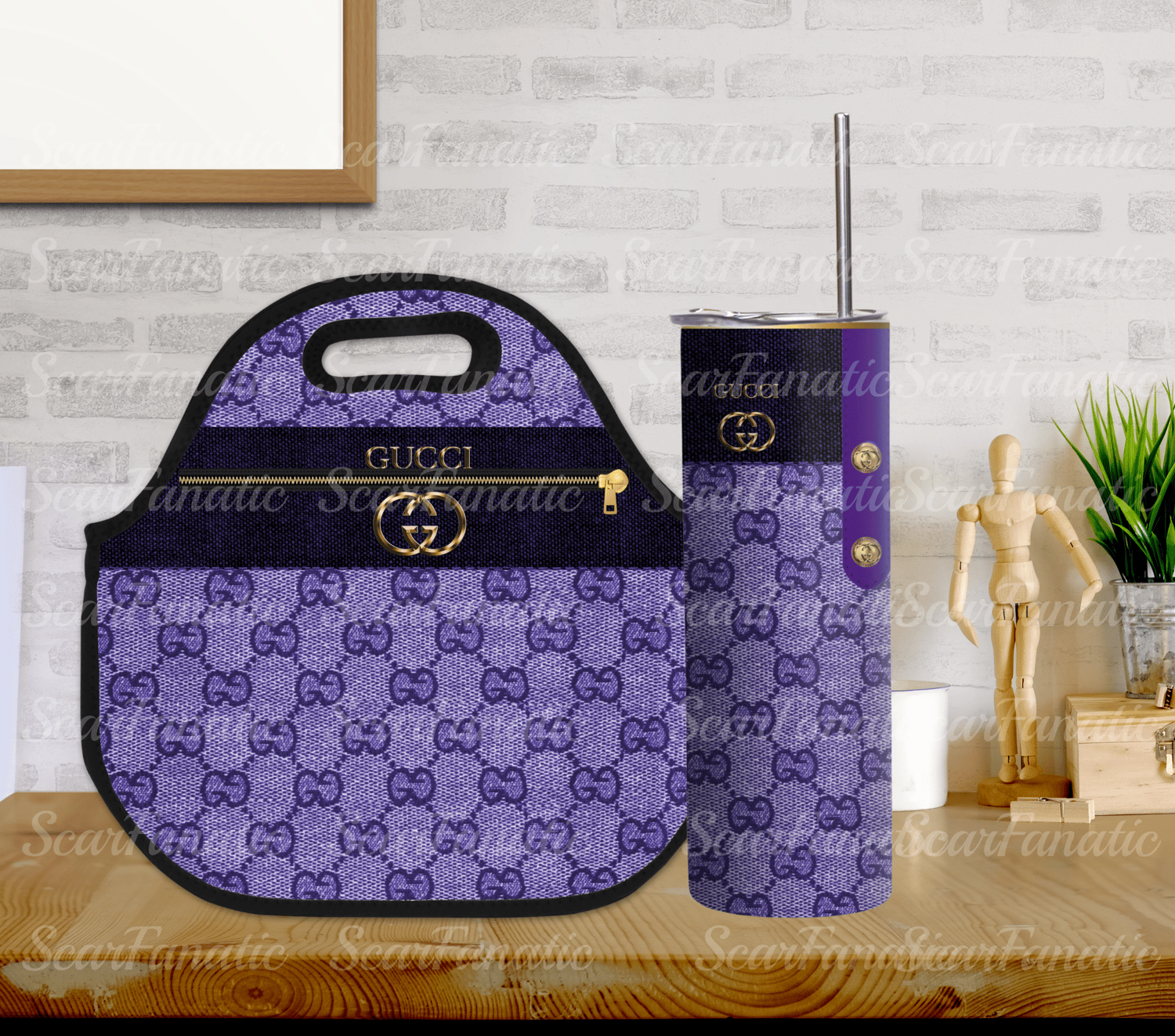 Purple GCC Denim Purse Look 20oz Zipper Tumbler and Lunch Tote PNG Design Bundle 3 Designs
