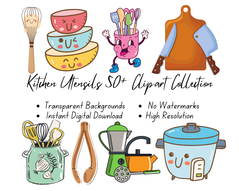 Kitchen Utensils 50+ Clipart Collection | High-Resolution Digital Printables | Instant Download | No Watermark