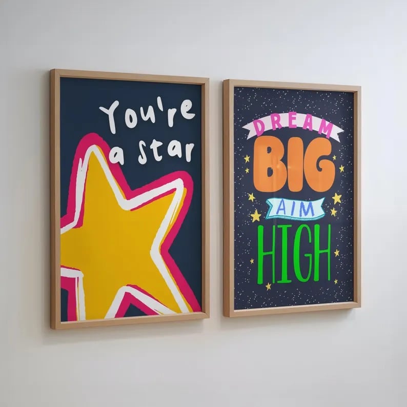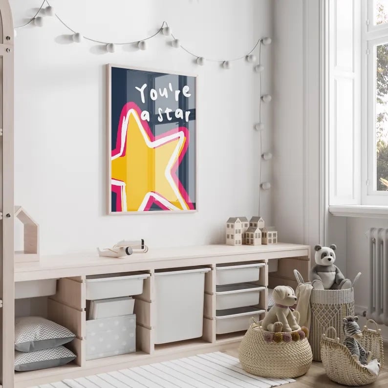 “You're A Star” Printable Kids Wall Art -With its vibrant colors and uplifting message, it's like a daily pep talk from your favorite cheerleader. Hang it up, kick back, and let it remind you and your child to embrace curiosity, embrace growth, and never forget to giggle along the way! Instant download means instant motivation—grab this kids wall art today and let the good vibes flow!