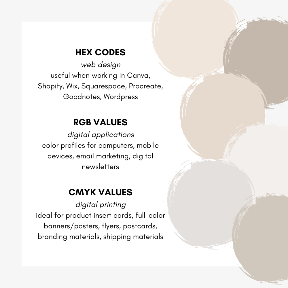 + Detailed Hex Codes, RGB, and CMYK values for each color