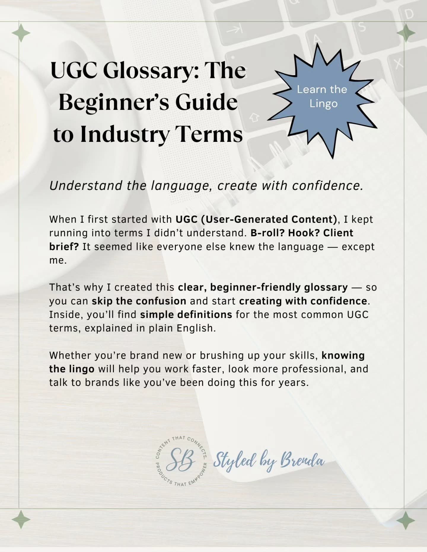 That’s why I created this beginner-friendly glossary. Inside, you’ll find plain-English definitions of the most common UGC terms so you can: