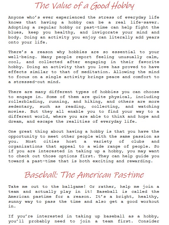 Anyone who’s ever experienced the stress of everyday life knows that having a hobby can be a real life-saver. Adopting a regular hobby or past-time can help fight the blues, keep you healthy, and invigorate your mind and body. Doing an activity you enjoy can literally add years onto your life.