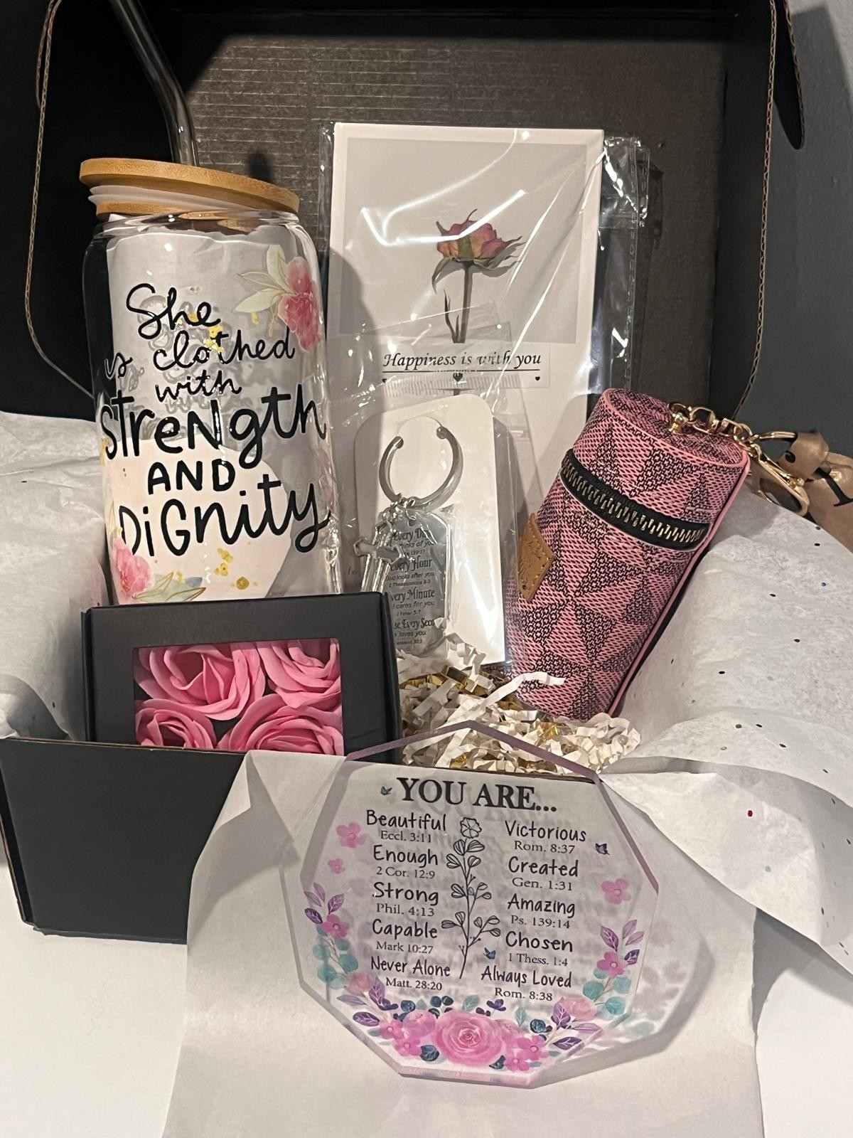 Encourage, uplift, and inspire with the Graceful Affirmations Gift Box—a beautifully curated collection designed to celebrate faith, inner strength, and self-love. Thoughtfully assembled with meaningful keepsakes and daily affirmations, this elegant gift set is perfect for anyone in need of encouragement, whether for a birthday, special occasion, or just because.