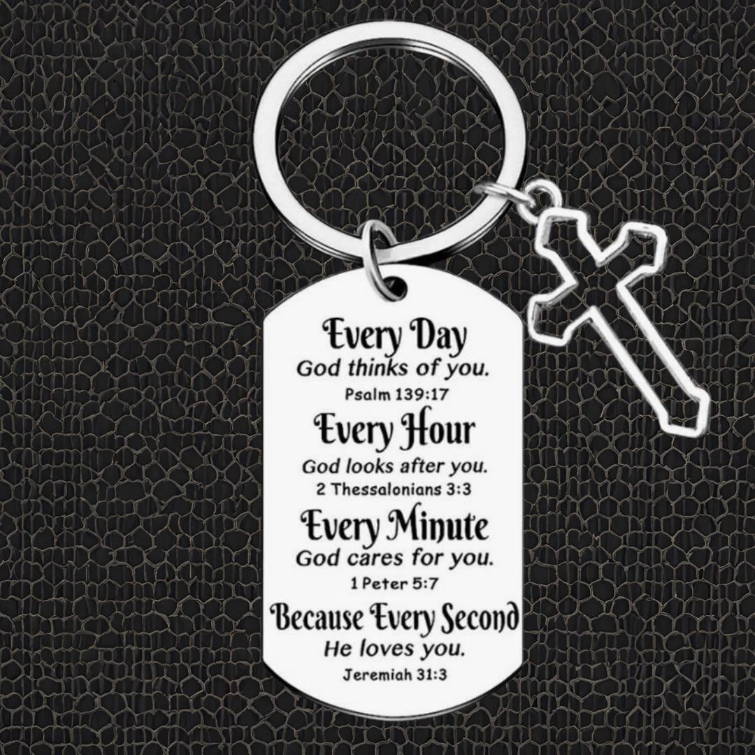 ✝️ Symbol of Faith – A stainless steel cross keychain serves as a daily reminder of God's love and presence.