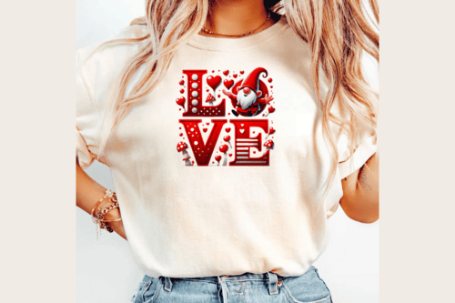 - Gnome & Heart Design: Cute gnomes holding love hearts, ideal for creating personalized Valentine’s Day gifts.