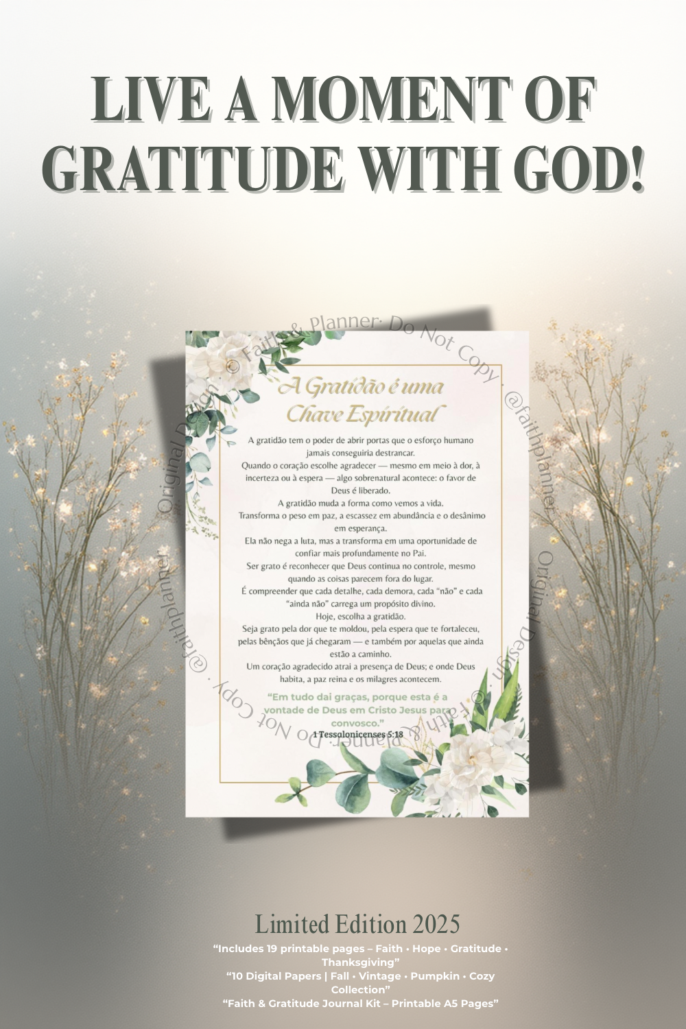 Faith & Gratitude Journal Kit – “Gratitude Moves the Heart of God” | Printable Devotional Planner | Limited Edition 2025