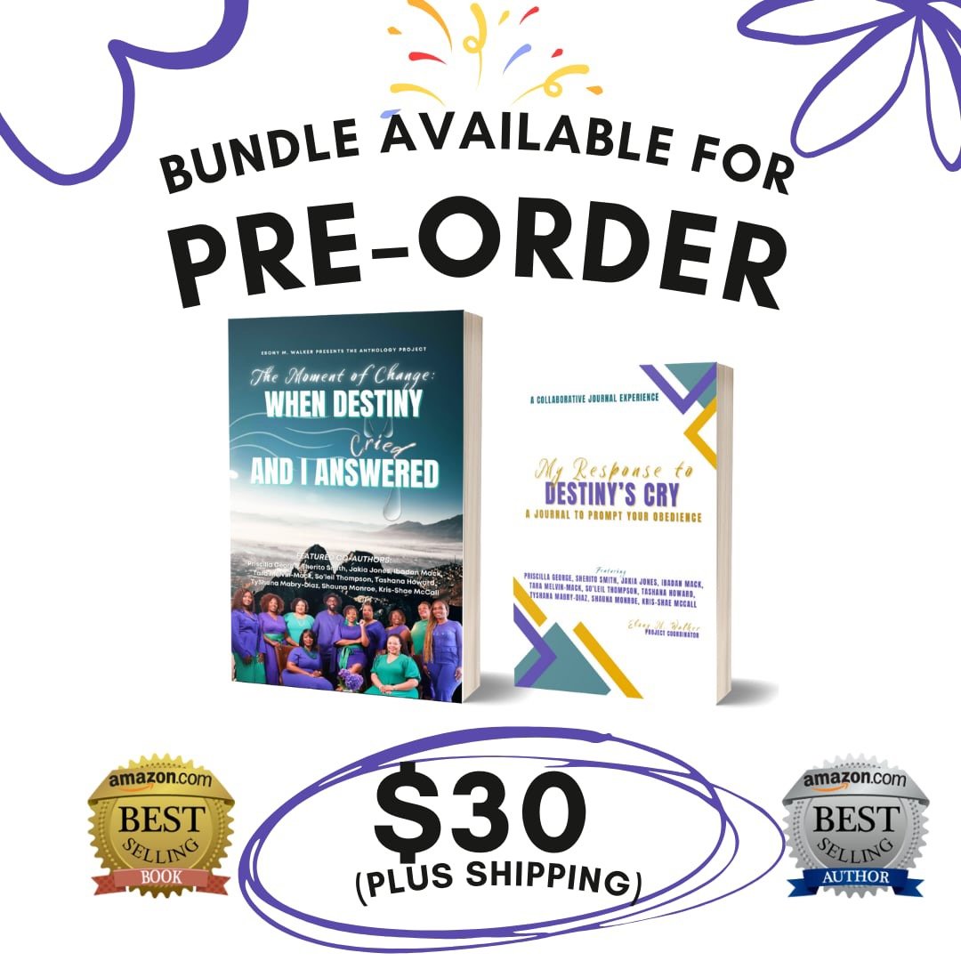 Now is the perfect time to grab your bundle of the Amazon Best-Sellers The Moment of Change: When Destiny Cried and I Answeredand My Response to Destiny's Cry: A Journal to Prompt Your Obedience. This duo, created by a cohort of anointed authors, is the perfect gift for anyone who is ready to do what God has called and equipped them to do!