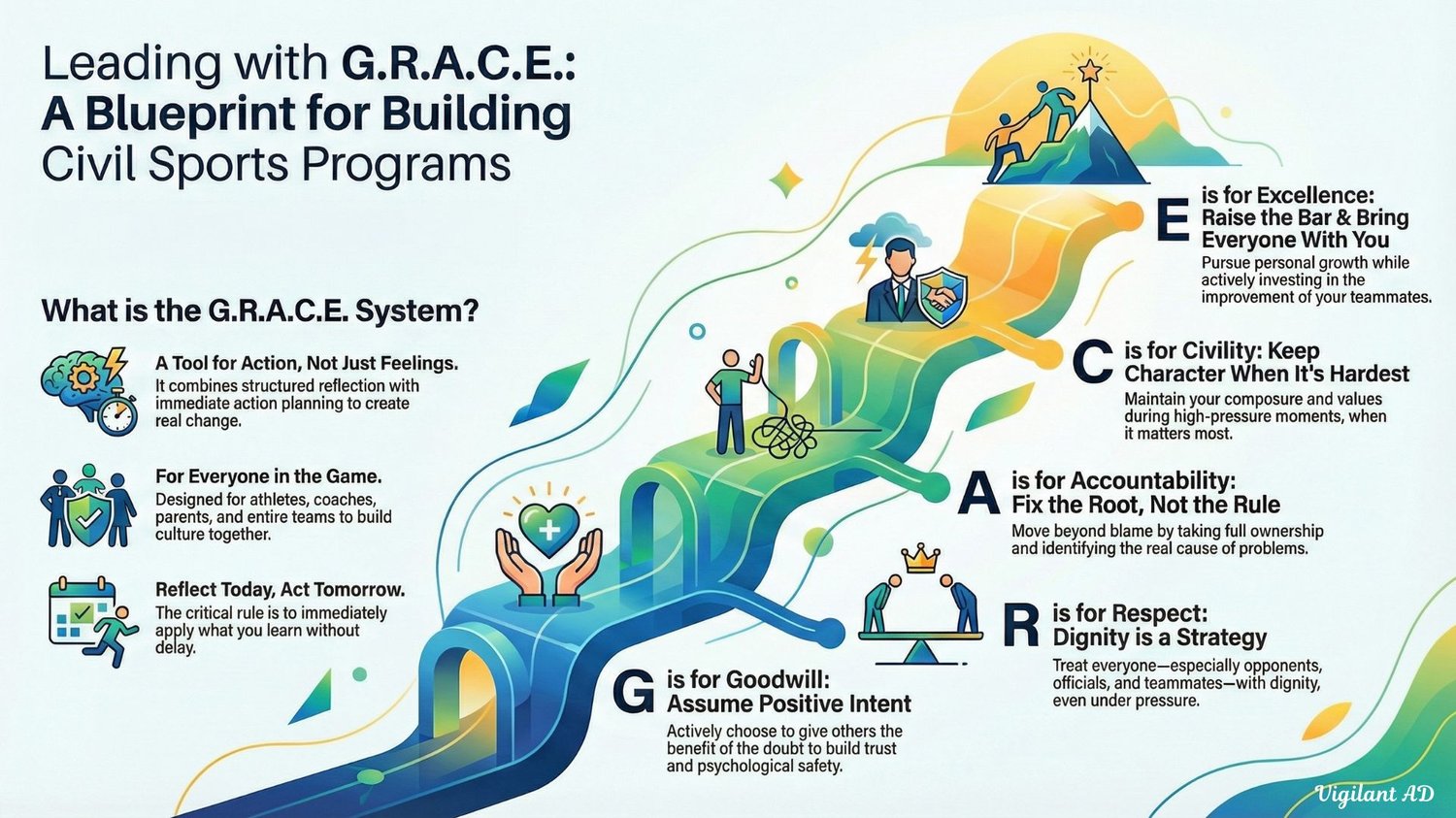 The G.R.A.C.E. Reflection Guide is a structured workbook designed to cultivate positive culture within sports programs by focusing on five core principles: Goodwill, Respect, Accountability, Civility, and Excellence. Rather than acting as a passive journal, this resource functions as an action-oriented tool for athletes, coaches, and parents to evaluate their behaviors through regular self-assessment.