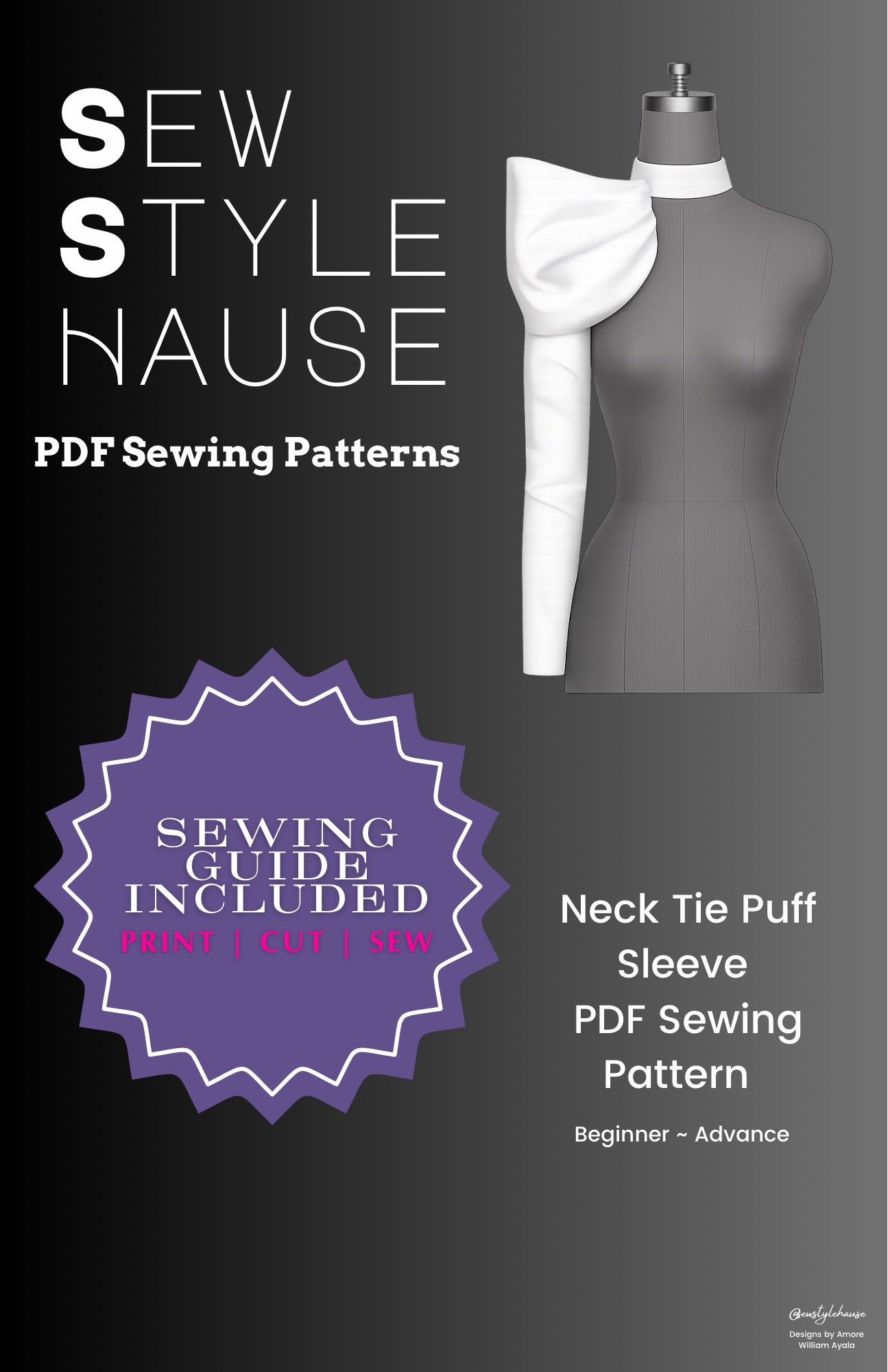 Neck Tie Puff Sleeve PDF Sewing Pattern