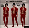 Male Bundle include : shirt in two different styles where each still has different opacity so you have 4 combinations. Pants in two different styles where each still has different opacity and Shoes. Bundle in V1 8 and V2 6 colors.
