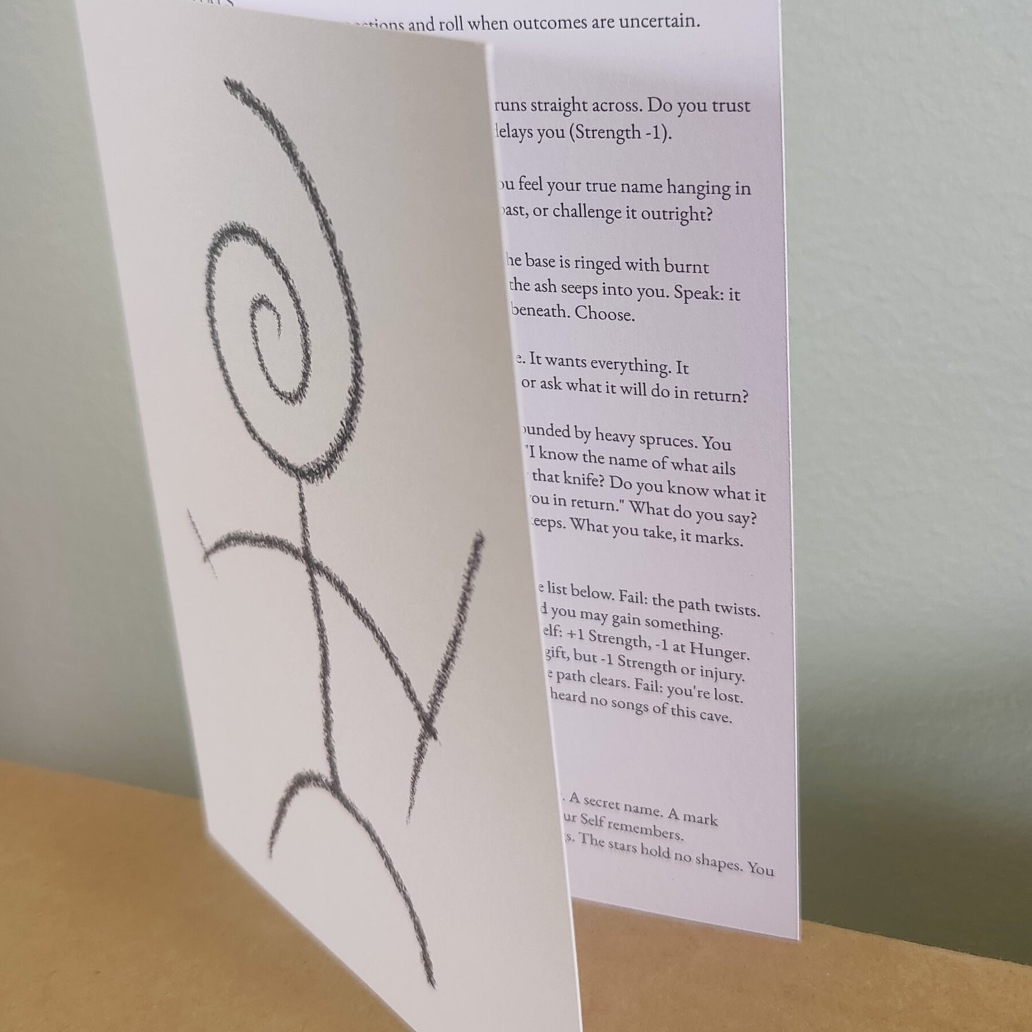 Played with a single d20, this 15-30 minute game is light in form, heavy in tone – a haunting passage through myth, hunger, and the unknown. For one player and a GM.