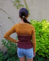 It is worked top down, with raglan sleeves and a slightly scoop neck on the front.