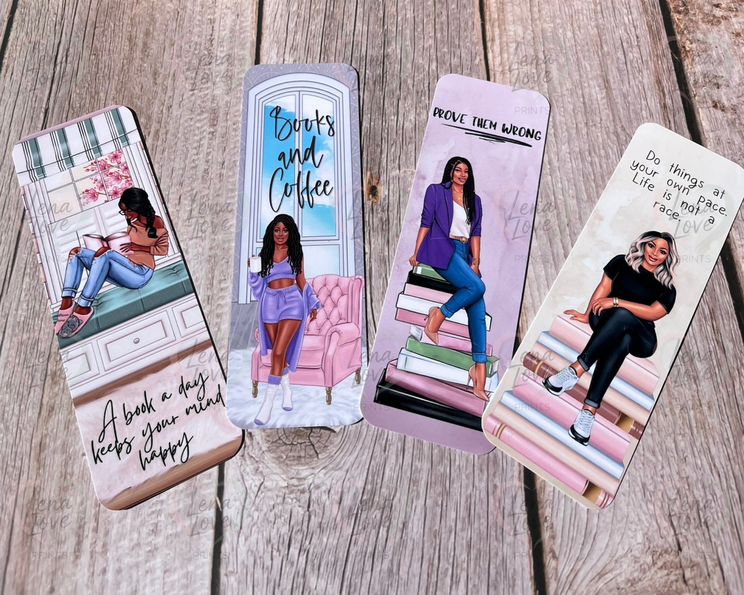 This empowering set of 4 laminated bookmarks blends elegant Black woman illustrations with uplifting affirmations like “Prove them wrong” and “Do things at your own pace.” Designed for book lovers who appreciate both beauty and strength, these bookmarks make meaningful gifts and stylish reading companions.