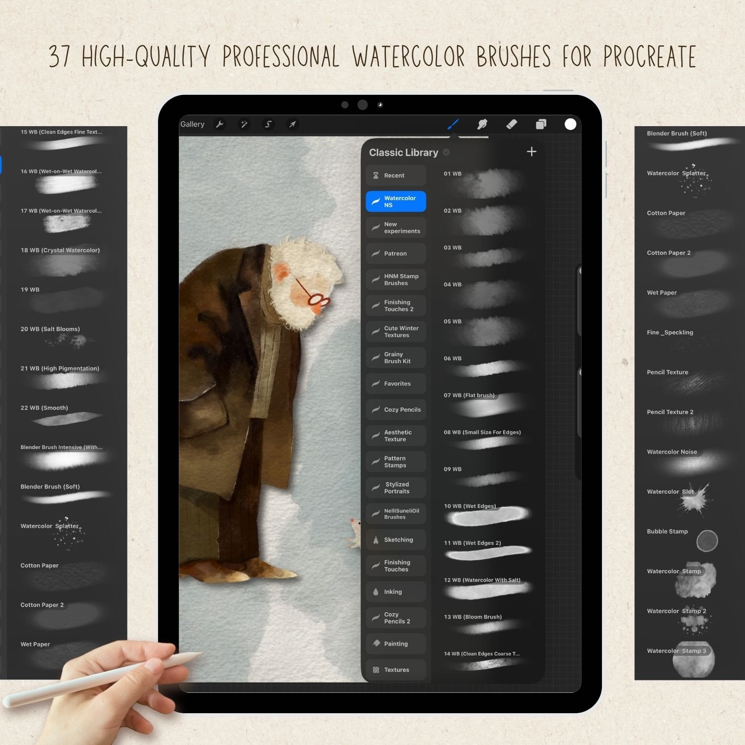 I spent months testing and refining these 37 brushes to capture the unpredictable, organic feel of real watercolor — the blooms, the texture, the happy accidents that make traditional painting so beautiful.