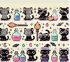 This Halloween Cat Bundle includes 21 high-quality, intricately designed images that are ideal for a variety of creative projects. The designs are provided in a digital format, making them versatile for use in everything from digital scrapbooks, social media posts, and party invitations to physical products like t-shirts, mugs, and posters. The bundle features a range of black cats adorned with classic Halloween elements—brooms, witches' hats, potions, and more—perfectly blending cute and spooky.