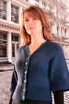 Wide sleeves and a cropped silhouette bring stylish attitude to the River Union Cardi. Extended raglan lines and volume sleeves create a blouson shape, while deep ribbing defines the waist. The full sleeves are balanced by their three-quarter length and deep ribbed cuffs, which match the figure-flattering waist ribbing at the hem. Knit seamlessly from the top down, it’s a fast knit with a fresh feel.