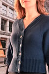 Construction: River Union is worked seamlessly from the top down in one piece with raglan shaping, in stockinette stitch with a deep, ribbed hem and cuffs. Stitches are picked up for the ribbed collar and buttonband, which finish the cardi with no seaming required. Instructions for working the simple, neat buttonholes are included in the photo tutorial with this pattern, and also appear in my video tutorial.