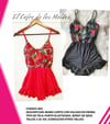 Molde Digital PDF Mono Entero escote corazon, Volado pierna, Patron Pack 5 Talles
