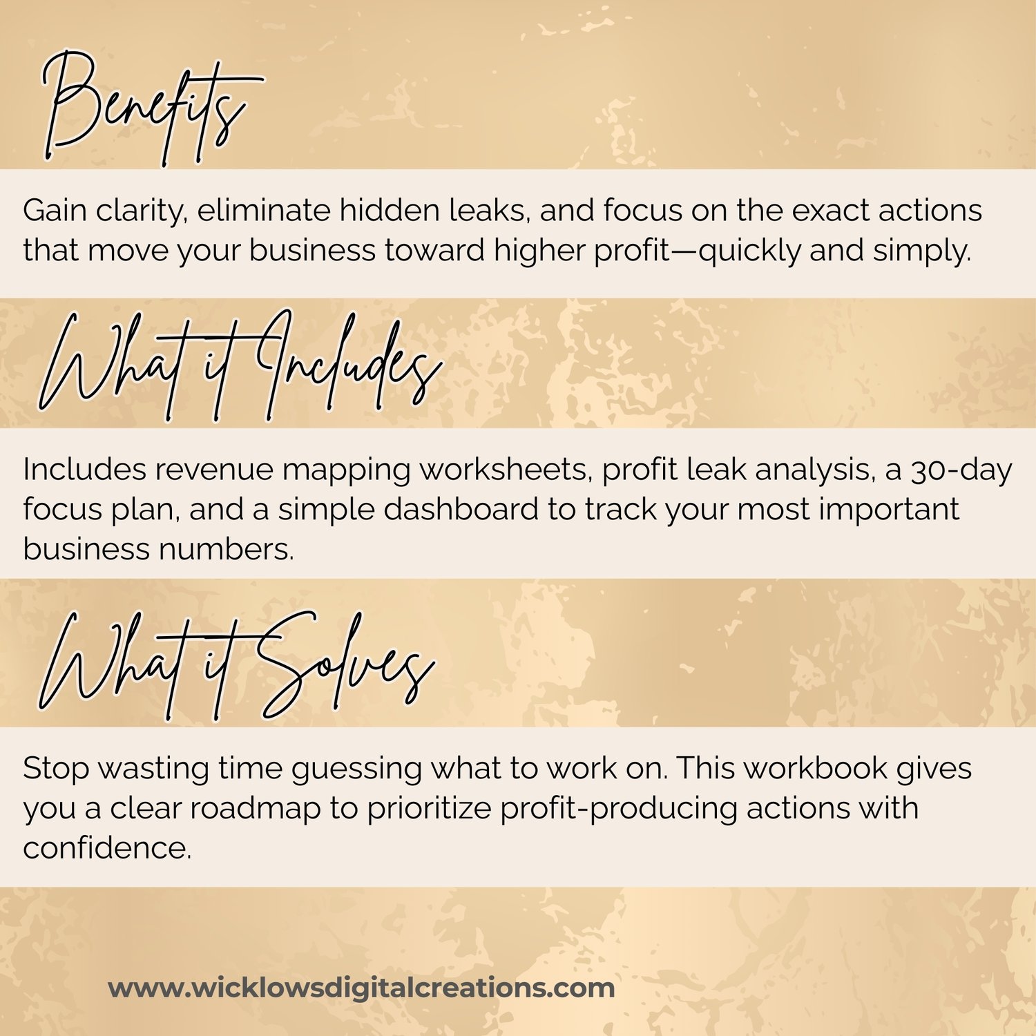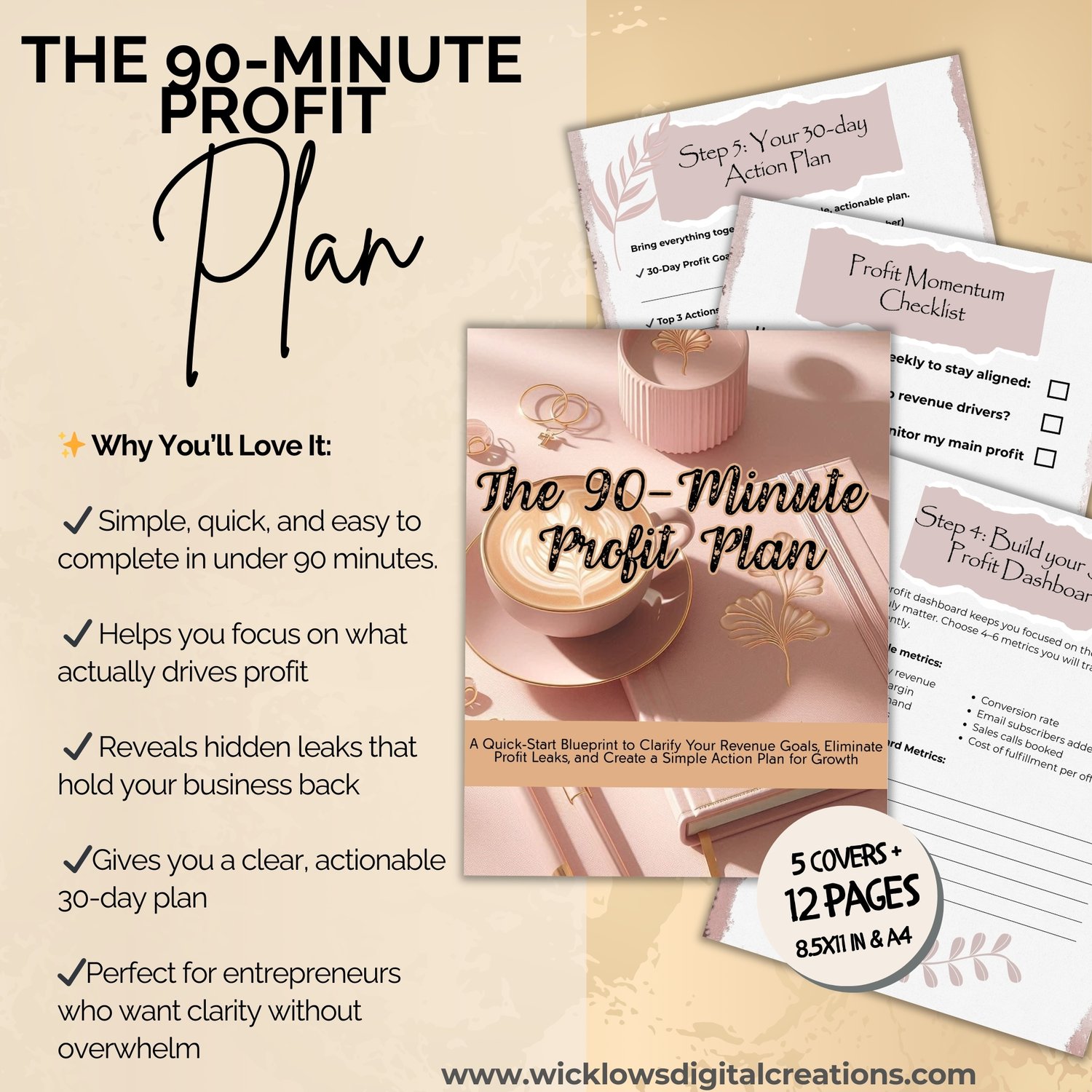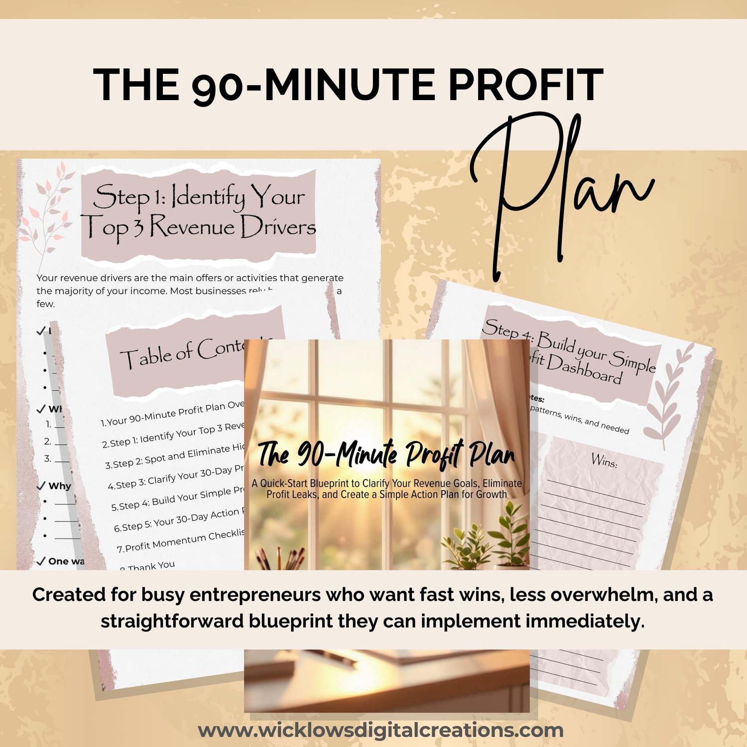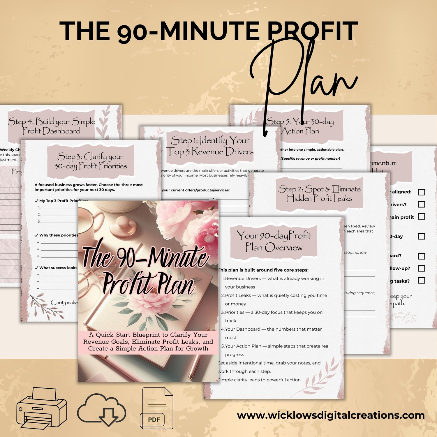 The 90-Minute Profit Plan is a beautifully structured, easy-to-use workbook that helps you identify what’s working, fix what’s not, and map out a focused 30-day action plan — all in under 90 minutes.