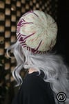 Worked sideways, Etereo makes effective use of short rows to not only create the shaping, but the beautiful pattern too. Delicate, floating lines gently wrap the organic form creating an overall ethereal effect. Worked in DK weight yarn the Hat can easily be adjusted for a range of sizes by changing needle size, gauge or yarn.