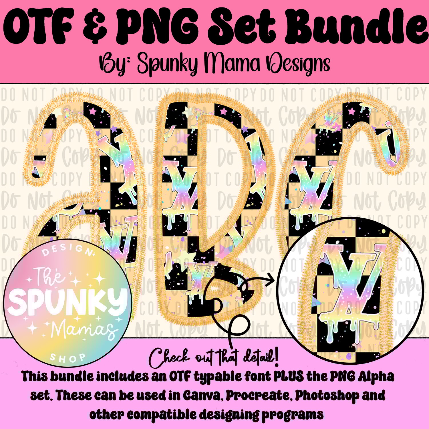 The OTF Font can be used in Photoshop, Canva Pro, Procreate and some other programs. (Please note that it does not work in all programs. You take responsibility of knowing this upon purchase.) Due to the nature of this being a digital product there is no refund accepted.