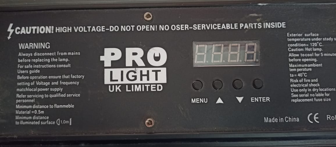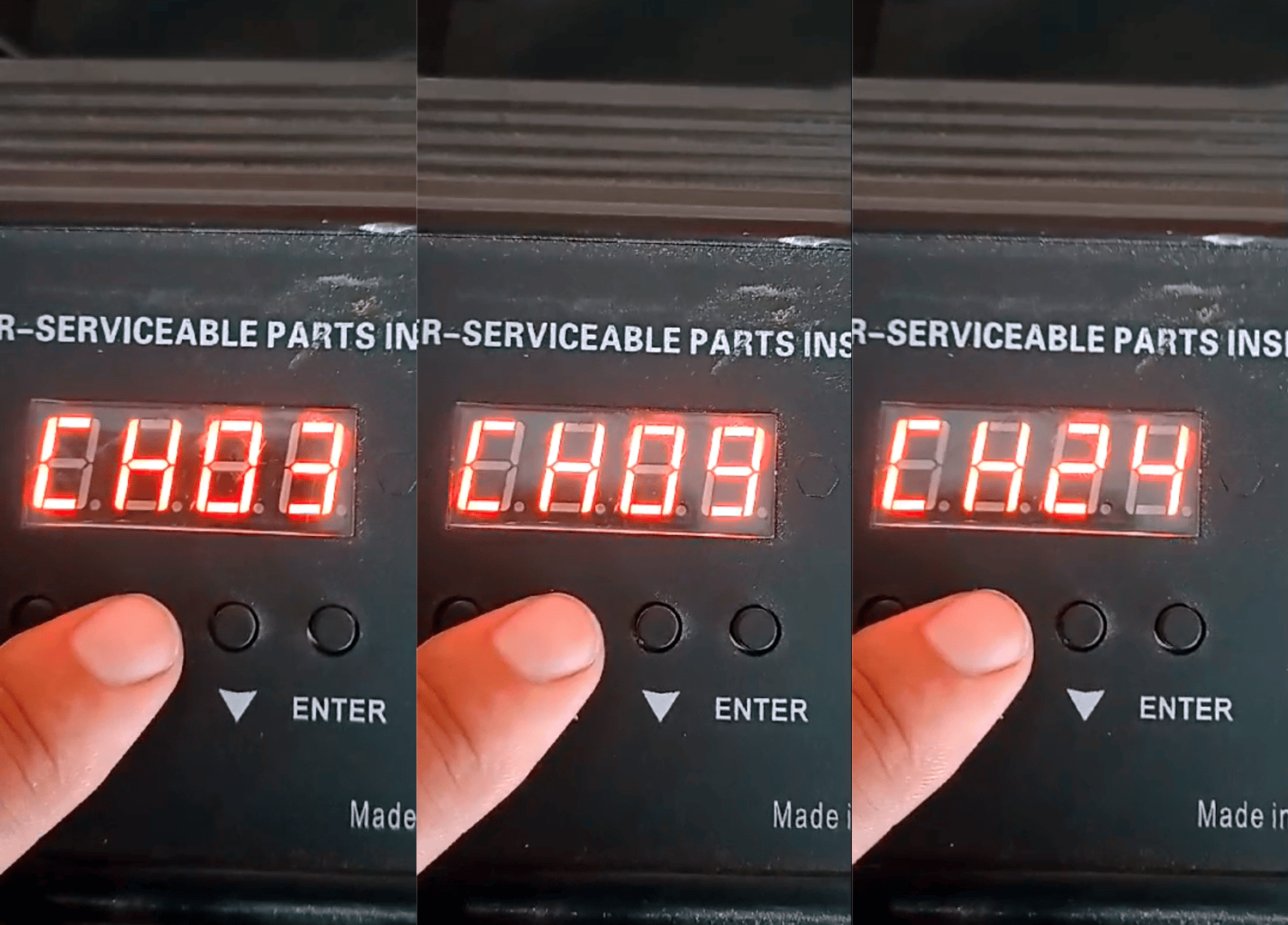 * Verifique, desde el menú del display, que muestre los modos dmx: 3 / 9 / 24CH.