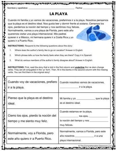 - 📖 1-page story and activity sheet featuring the verbs preferir, querer, sentir, and cerrar