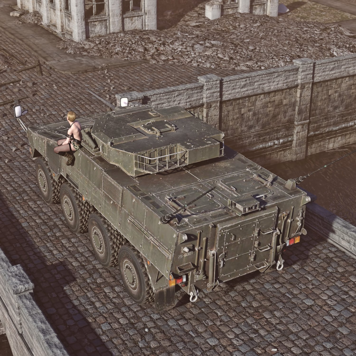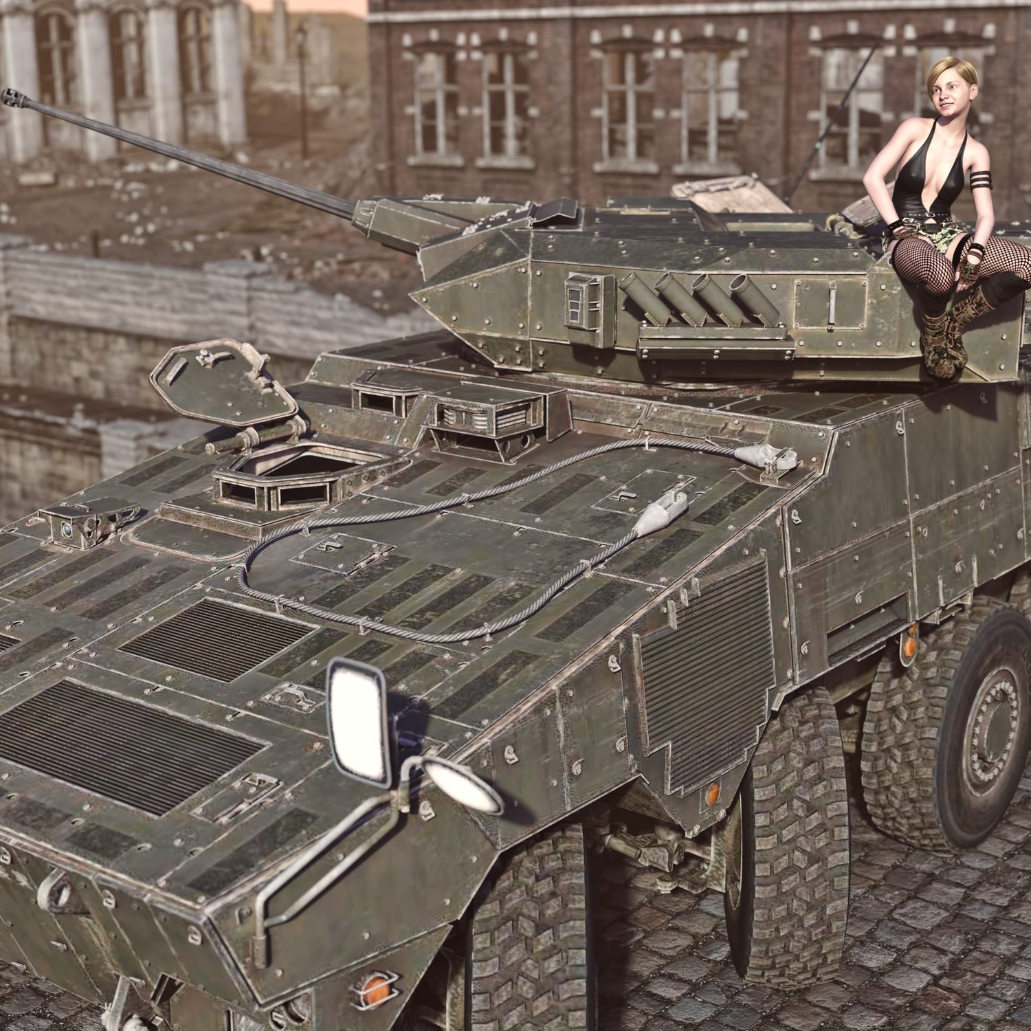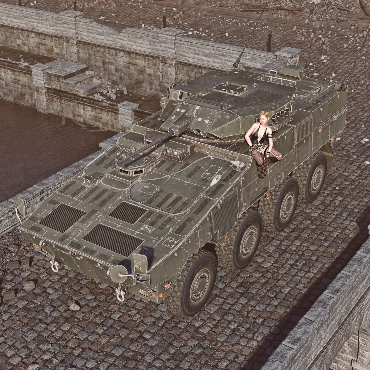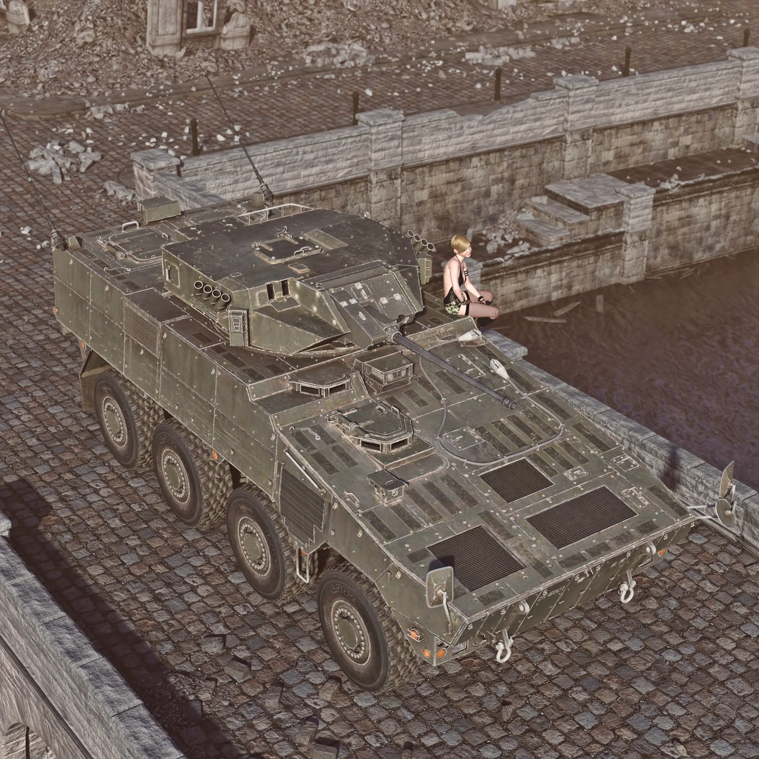 A cool Infantry Combat Vehicle for an efficient transportation of troops and providing fire support. Heavier than an armored car, but not a tank. Has a good gun and a coaxial machinegun for providing pretty good suppressing fire. Rear hatch rigged for fast dismount from the back or for quick evacuation. Other hatches also can be open for dismount and easy access. Good for transportation and for combat with lightly to moderate armored enemies. You can also take your friends with you- it has some space. Has internals and rear space for troops, but it's very limited. Turret and gun also rigged for good positioning. The prop is converted and rigged for DAZ.