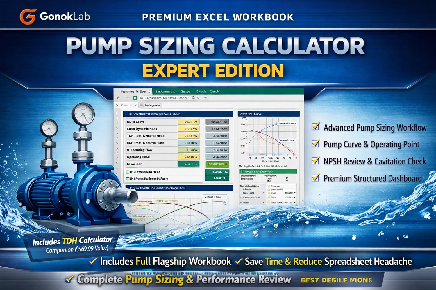 This workbook is intended for engineering calculation support, review, and estimation. Final pump selection and project decisions should always be verified using manufacturer data, actual project conditions, applicable codes, and professional engineering judgment.