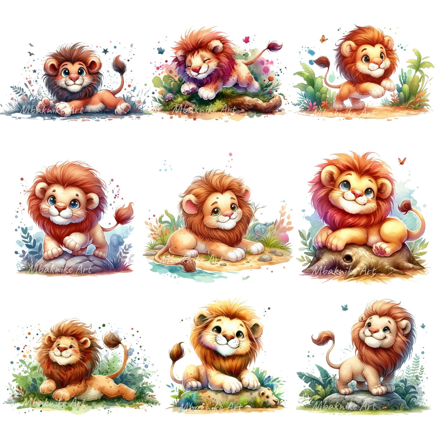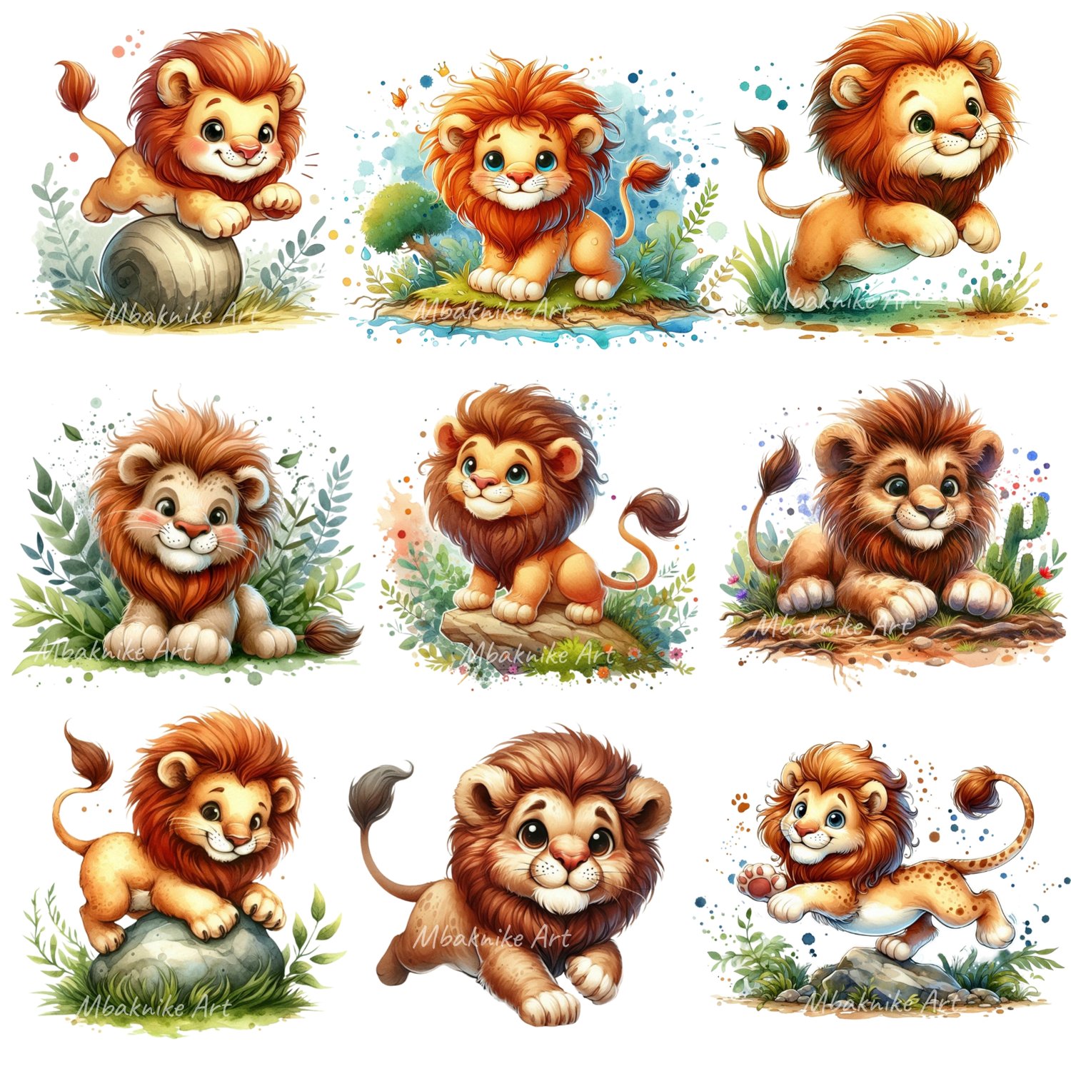 Transform your creative projects with our "Cute Playful Lion Clipart" collection! This digital pack includes 20 unique and whimsical images, each in PNG transparent format at a high resolution of 300 dpi and 4096 x 4096 px.