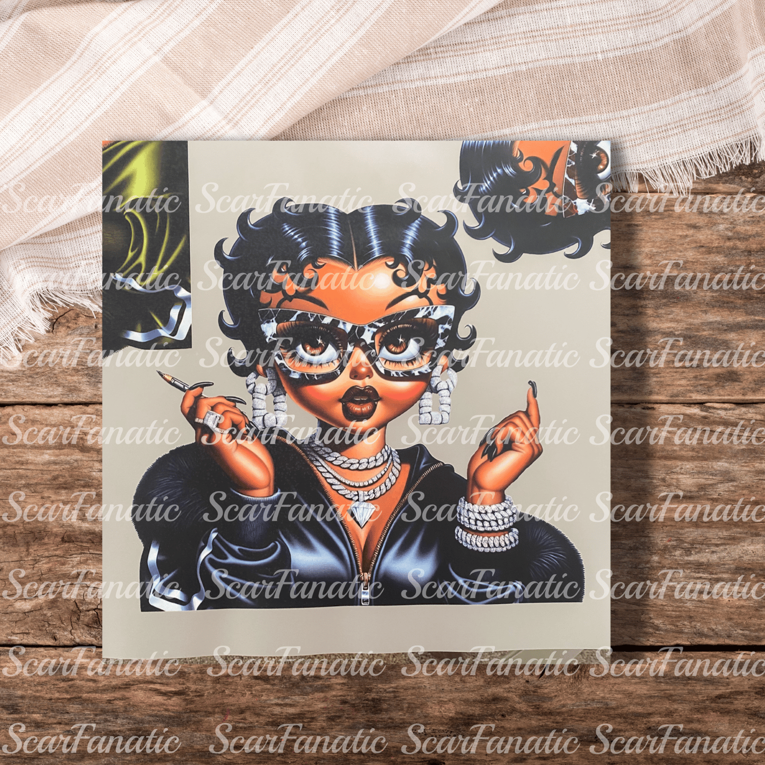 Black Betty Boop with Marble Glasses DTF Transfer by Size