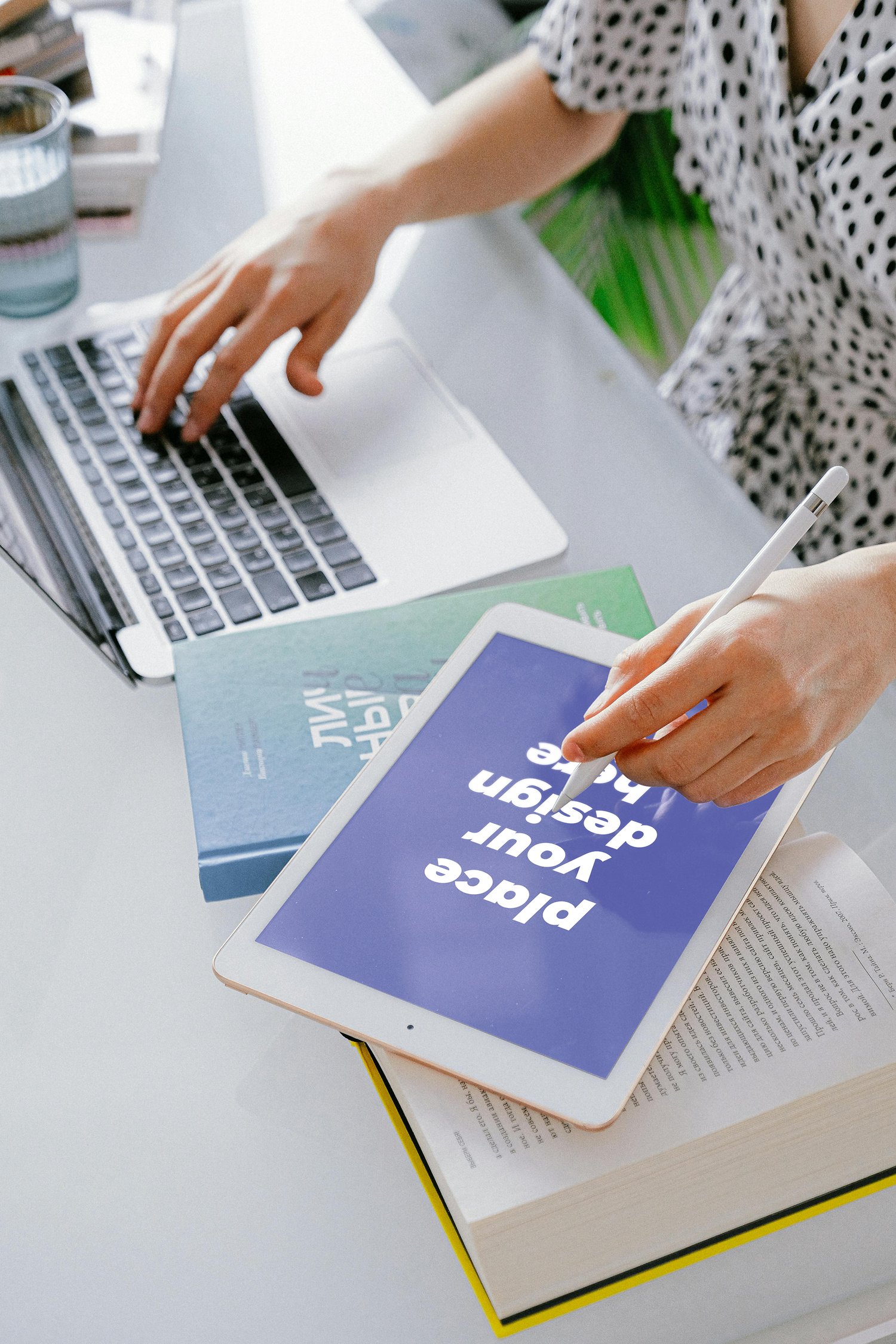 Showcase your apps, websites, or digital designs with this Free iPad Mockup. Featuring a realistic tablet on a desk with books and a laptop, this mockup gives your projects a clean and professional presentation.