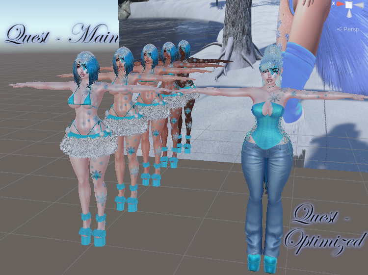 - Quest side does not sync with PC side: Acc: Body Piercings, Face Piercings, Earrings, Tops: Bra, Long sleeve, Bottoms: Skirt, Skinny jeans, Bikini Panty, Shoes: Heels, Barefoot Mat Swaps: Top Swap, Bottom Swap, Heel Swap, Metal Swap, All Over Hue (includes eye hue) Body Changes: Hair Styles: Blud, Straight Ponytail, Hair Color 1 & 2, Hair Hue, Eye Swap (left & right), Tattoo On/Off (Upload Skin tone you want), No Blinking, Gogo Loco