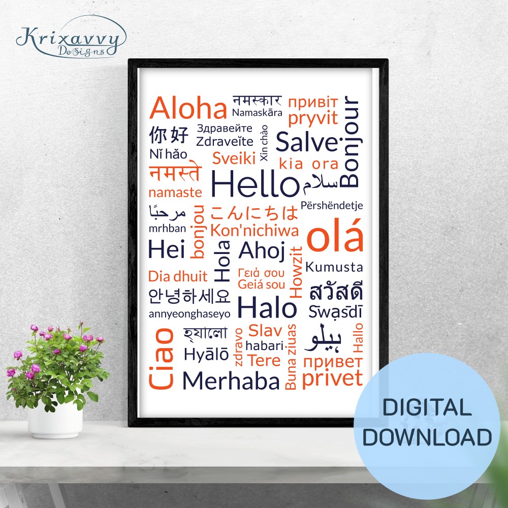 ✨ HELLO in different languages WORD CLOUD Wall Art ✨