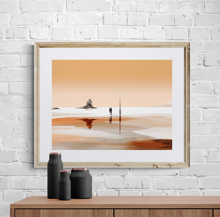 Immerse yourself in the tranquility of the seaside with "Beach Reverie". This digital, minimalist abstract artwork is an evocative representation of a serene beach area, bringing a touch of coastal calm to your space.