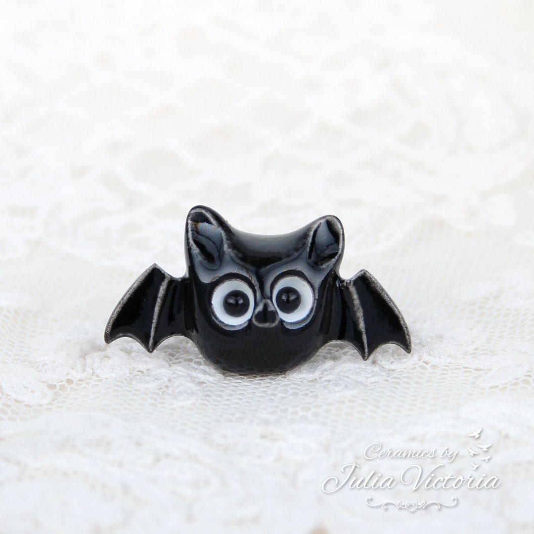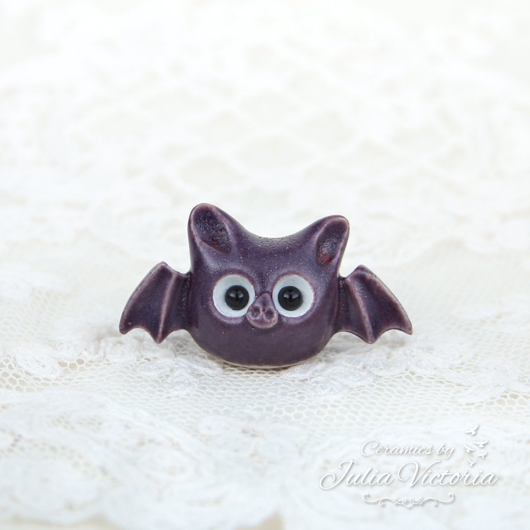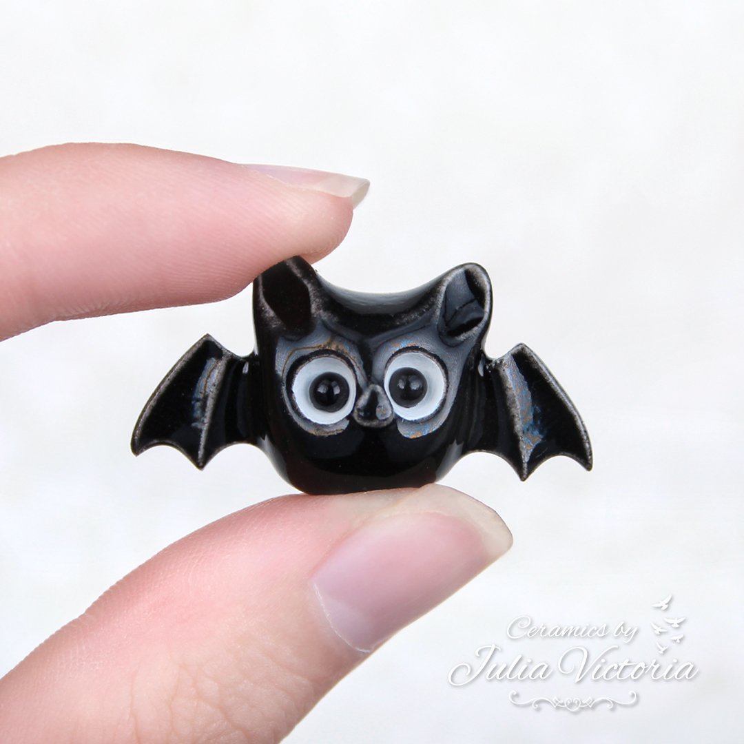 This cute little bat is looking for a new place to sleep. It is hand-sculpted in ceramics, glazed and painted by me