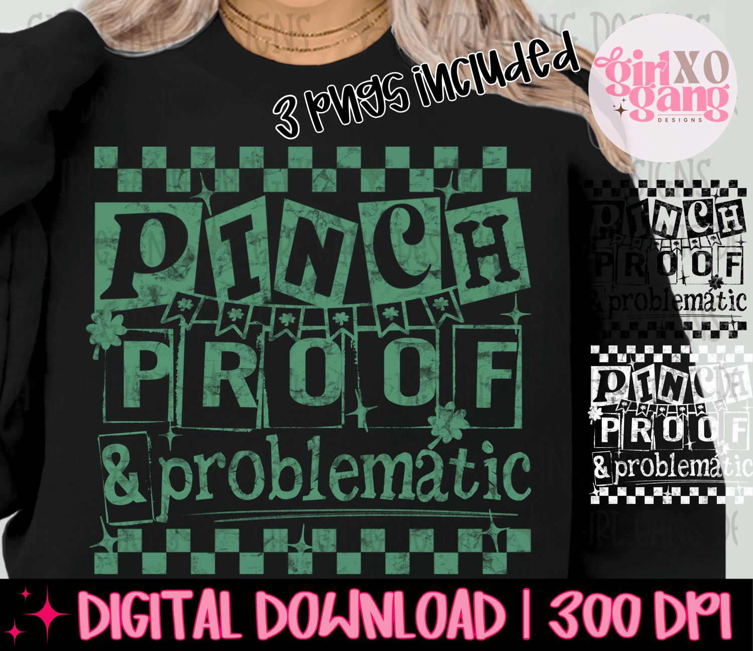Pinch proof and problematic png, st Patrick’s day checkered design, distressed grunge st paddy’s day design, 3 colors included