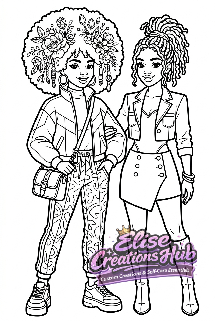 This beautifully designed 40-page colouring book celebrates self-love, friendship and Black girl magic 🌸 From high-end fashion looks to bold hairstyles and bestie vibes, every page is created to inspire creativity and confidence 💫