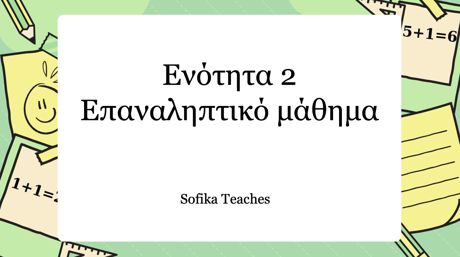 Η παρουσίαση αυτή αφορά το Κεφάλαιο 16 των Μαθηματικών της Α΄ τάξης, που λειτουργεί ως επαναληπτικό μάθημα της δεύτερης ενότητας.