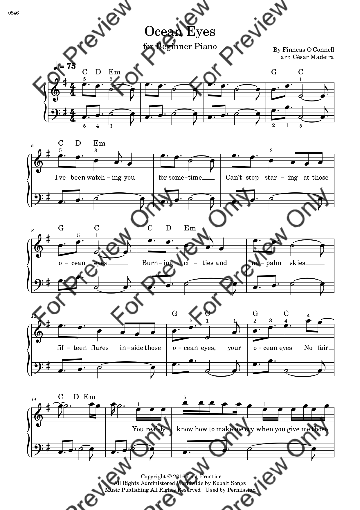 Ocean Eyes by Billie Eilish. Arrangement for Beginner/Easy Piano. With Full Score. Have fun!